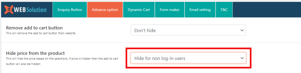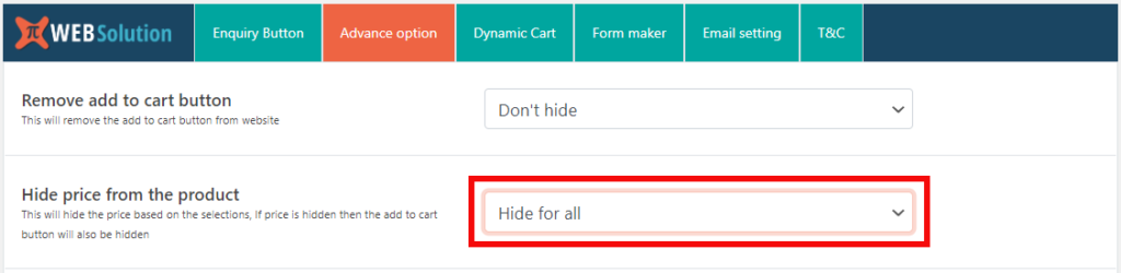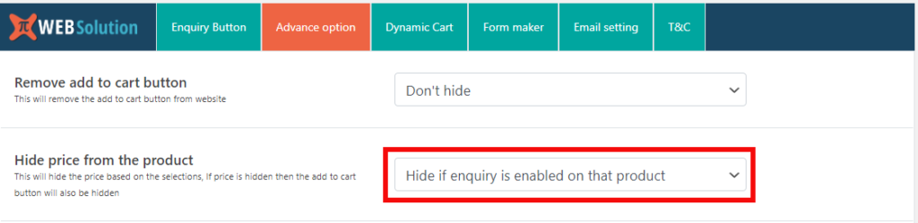 - Ther is an option in the plugin to hide the Enquiry button for user based on there role