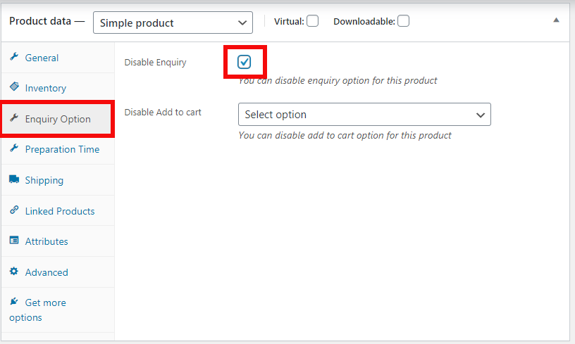 Go to the product edit page of that product (by default enquiry is enabled for all product)