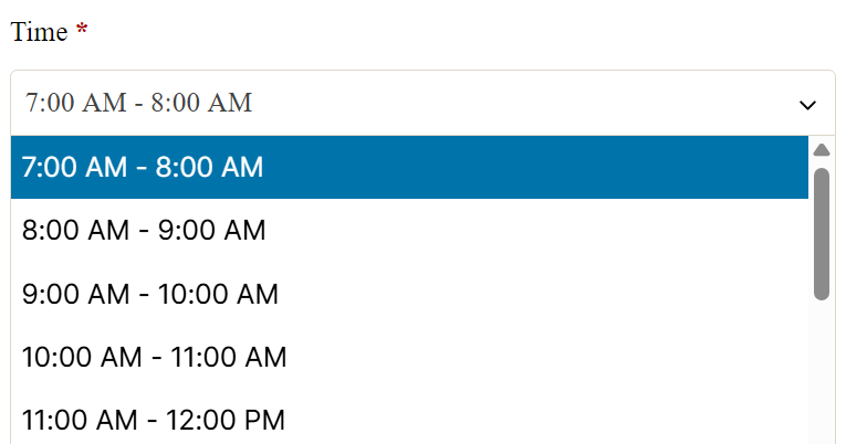 • Single Time – Customers select a specific time point, such as 2 PM, 3 PM, 4 PM.