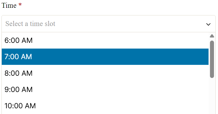 Customize the message shown to customers for each available time slot, helping them understand slot capacity in real time. If you don’t want to show this message then leave this field empty.
