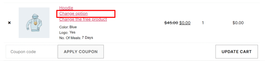 Allow user to change the variation of the free product