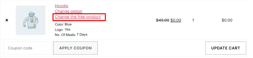 Allow user to remove free product from the cart