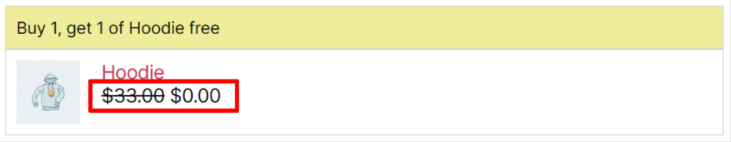 Displays the free product’s original price with a strikethrough, so customers see the savings.